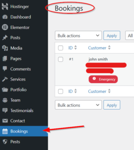 Dashboard → Bookings