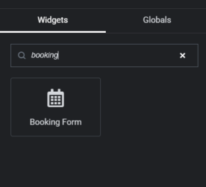 Search for “Booking Form” in the widgets panel