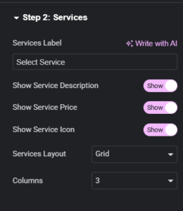 | Services Label | “Select Service” | Section title |