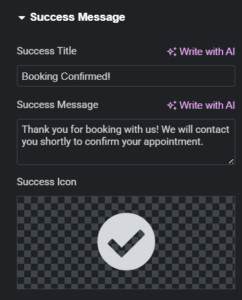 | Success Title | “Booking Confirmed!” |